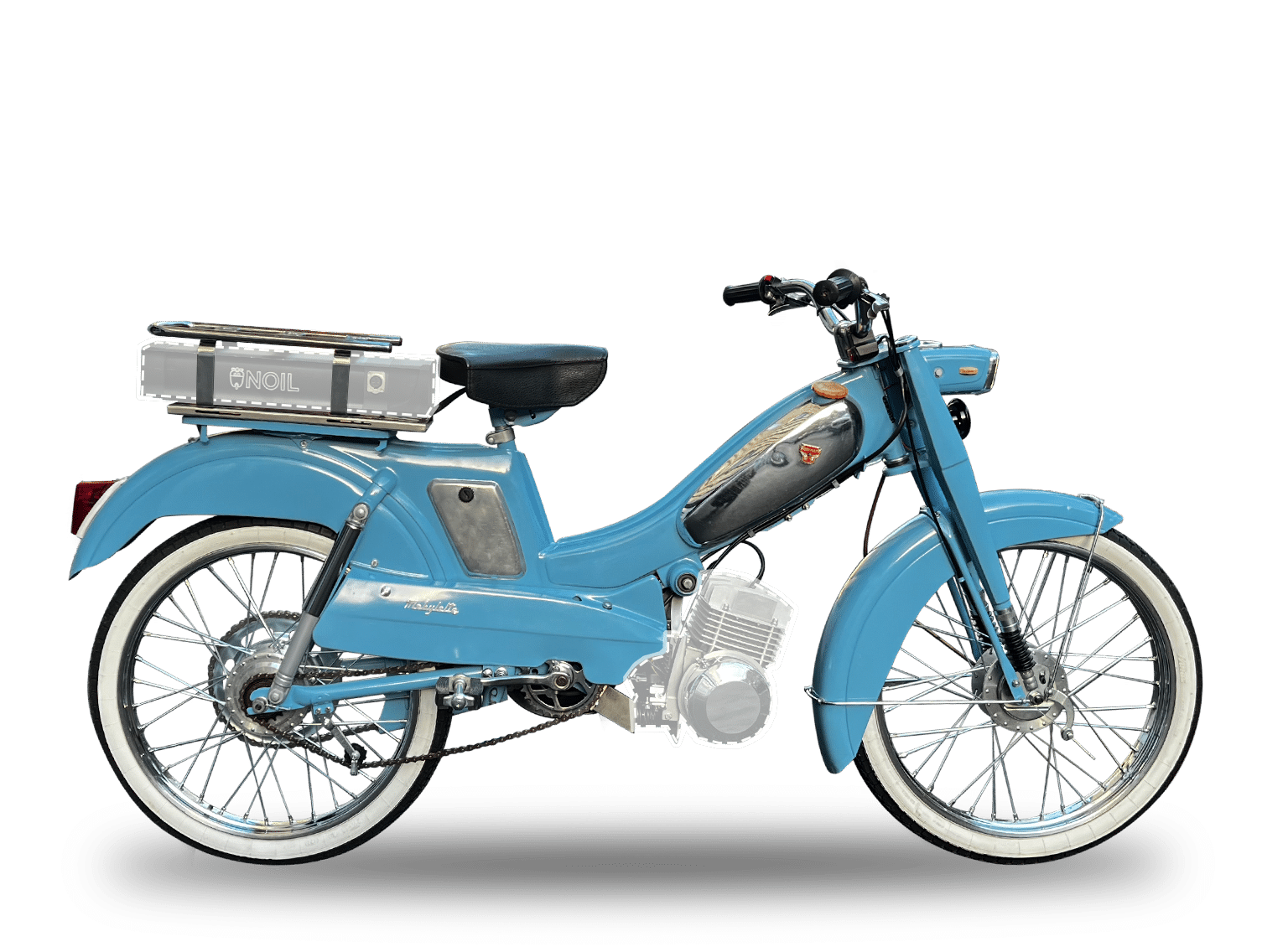 La transmission d’origine par courroie et par chaîne reste fonctionnelle lors de la conversion électrique. Tout ce qui fait le charme de la mythique d’une Motobécane est conservé. C’est ça la magie de NOIL !